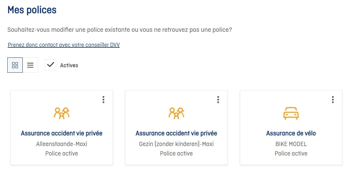 Bien que votre conseiller DVV reste disponible pour vous, vous pouvez à tout moment déclarer vos sinistres dans MyDVV pour la plupart de vos assurances. Il est aussi possible suivre vos sinistres, étape par étape.