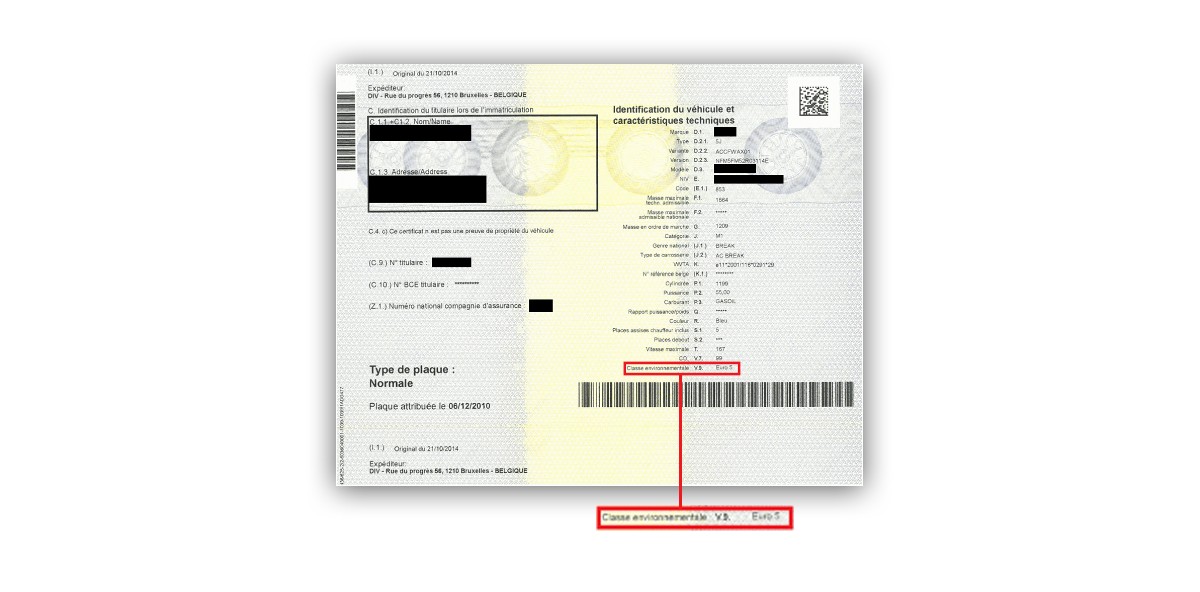 Que ce soit à Bruxelles, à Anvers ou à Gand, la norme Euro de votre voiture détermine si vous pouvez rouler en ville. Ce chiffre figure sur le certificat d’immatriculation (carte rose ou grise) dans la rubrique ‘Classe environnementale’ (V.9). Si la norme Euro n’est pas indiquée, c’est la date de la première immatriculation qui compte.